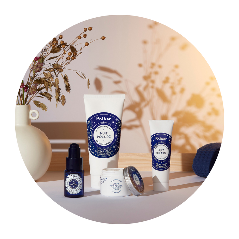 Polaar is the very first face and body cosmetics brand born of scientific research in the Far North. Following numerous polar explorations, we have identified exceptional active ingredients capable of surviving the harsh climatic conditions of the Arctic Circle: their incredible moisturizing, softening and anti-wrinkle properties are made accessible to the greatest number through a range of natural and effective skincare products, available on their own or in boxes in our online boutique. Our moisturizing skin care range features 8 polar active ingredients of particular interest for caring for and preserving the beauty of your skin. Rare, natural and pure active ingredients from the extreme cold, with proven benefits for the epidermis. FromSiberian Olive, bursting with vitamins and antioxidants, to Iceberg Water, the purest water in the world, not forgetting Boreal Algae, capable of improving cell regeneration, or plant salicylic acid, our ingredients are carefully selected for their fabulous properties and their ability to improve the suppleness, youthfulness and radiance of all skin types: combination, oily, normal, dry or dehydrated. You'll find these natural active ingredients in our day and night face creams, in our moisturizing body care products, in our eye contour moisturizer, and in our moisturizing masks and patches, which are unrivalled in their ability to awaken and sublimate the epidermis. Sourcing and harvesting active ingredients in the heart of the Nordic countries is at the heart of our responsible approach. This is done ethically and sustainably in partnership with polar explorers, who identify plants with unique properties, and small local producers, always with respect for the environment. Enjoy the benefits of Arctic active ingredients, yes, but not at any price! Preserving polar biodiversity, protecting nature and its priceless riches has always been our priority. Polaar skincare products are vegan, cruelty-free and not tested on animals. We give priority to natural ingredients and plant-based materials. So, unlike many brands, our skincare products contain no mineral oils, parabens or alcohol. Our products are for everyone, men and women, and some of our products are so gentle they can even be used by the whole family! The Polaar brand is made in France: our company was born in France, we are a French manufacturer, and all our skincare products are formulated and manufactured in the country to benefit from know-how recognized and envied the world over. Opting for French manufacturing reflects our desire to be part of the local economic fabric, to produce as close as possible to the consumer, and to meet their expectations while limiting our logistical and environmental impact. Our creams feature cocooning, melt-in-the-mouth textures and delicate fragrances for a unique sensory journey that combines pleasure and effectiveness. Our skin care products are comforting and intensely nourishing, without leaving the skin feeling greasy or sticky. Whatever your age, your skin type and the effectiveness you're looking for, you'll find a Polaar face or body care product to meet your needs.