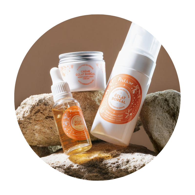 L'Olivier de Sibérie, le secret de beauté le mieux gardé de la Toundra, 30 fois plus concentré en vitamine C qu’une orange, enrichie notre gamme Éclat Boréal pour raviver l’éclat du teint.